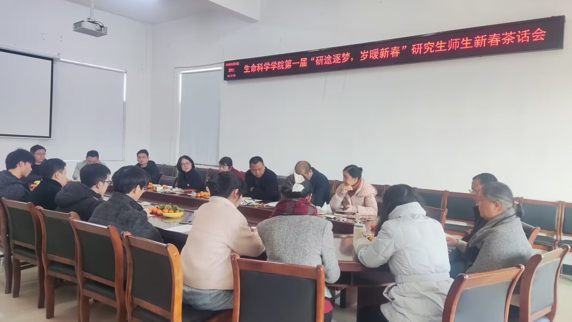 2026年1月13日下午,生命科学学院在至善楼401室温情举办首届“研途逐梦,岁暖新春”研究生师生茶话会。学院党政领导班子、全体研究生导师、在校研究生、研究生秘书及辅导员欢聚一堂,共同回顾学业成长、交流科研心得、畅谈未来发展,在温馨融洽的氛围中共迎新春。学院党总支副书记陈雅斐主持茶话会,此次活动不仅是一场师生间的深度对话,更是学院落实立德树人根本任务、强化研究生培养质量、营造优良学术生态的重要举措。