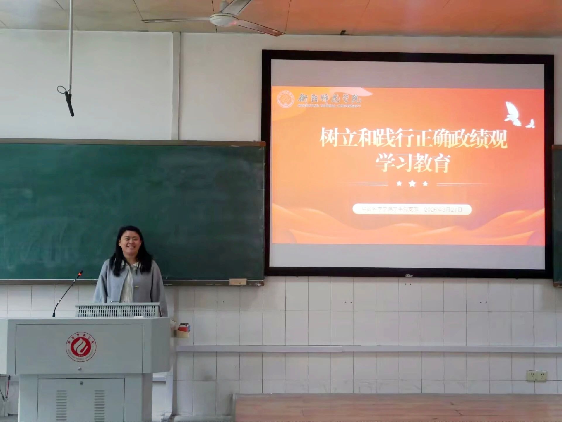 2026年3月27日下午13:00,我院学生党支部在行知楼102召开全体党员大会,深入学习贯彻习近平总书记关于树立和践行正确政绩观的重要论述和二十届四中全会精神。本次大会由学生党支部书记付蓉主持。